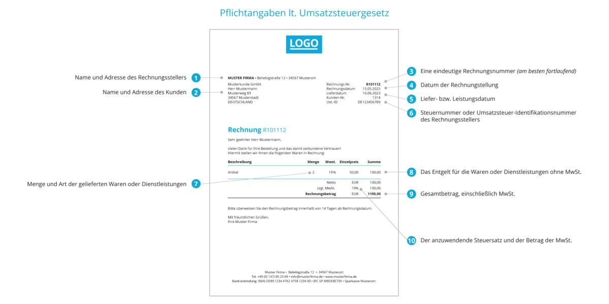 Diese zehn Pflichtangaben müssen laut USt.-Gesetz auf der Rechnung stehen.