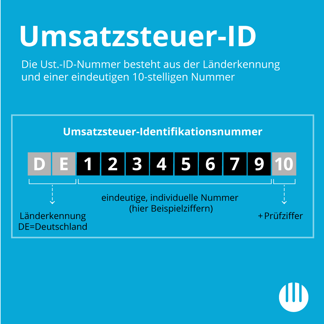 So setzt sich die Umsatzsteuer-ID zusammen: Länderkennung + 10 eindeutige, individuelle Nummern. Die letzte der Nummern ist die Prüfziffer.